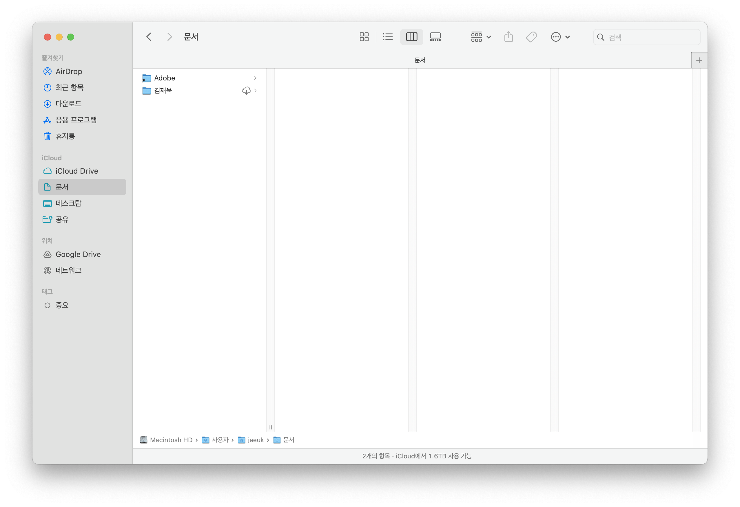 Adobe 프로그램을 설치하면 iCloud Drive에 있는 문서 폴더에 자신들의 데이터를 저장한다. 굳이 iCloud Drive에 저장하는 이유가 뭐야...